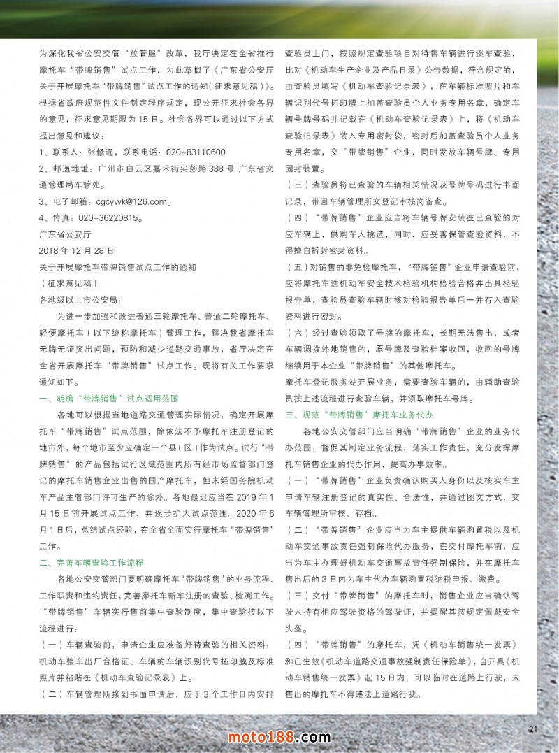 內(nèi)21 解禁摩有望 廣東將開展摩托車帶牌銷售工作