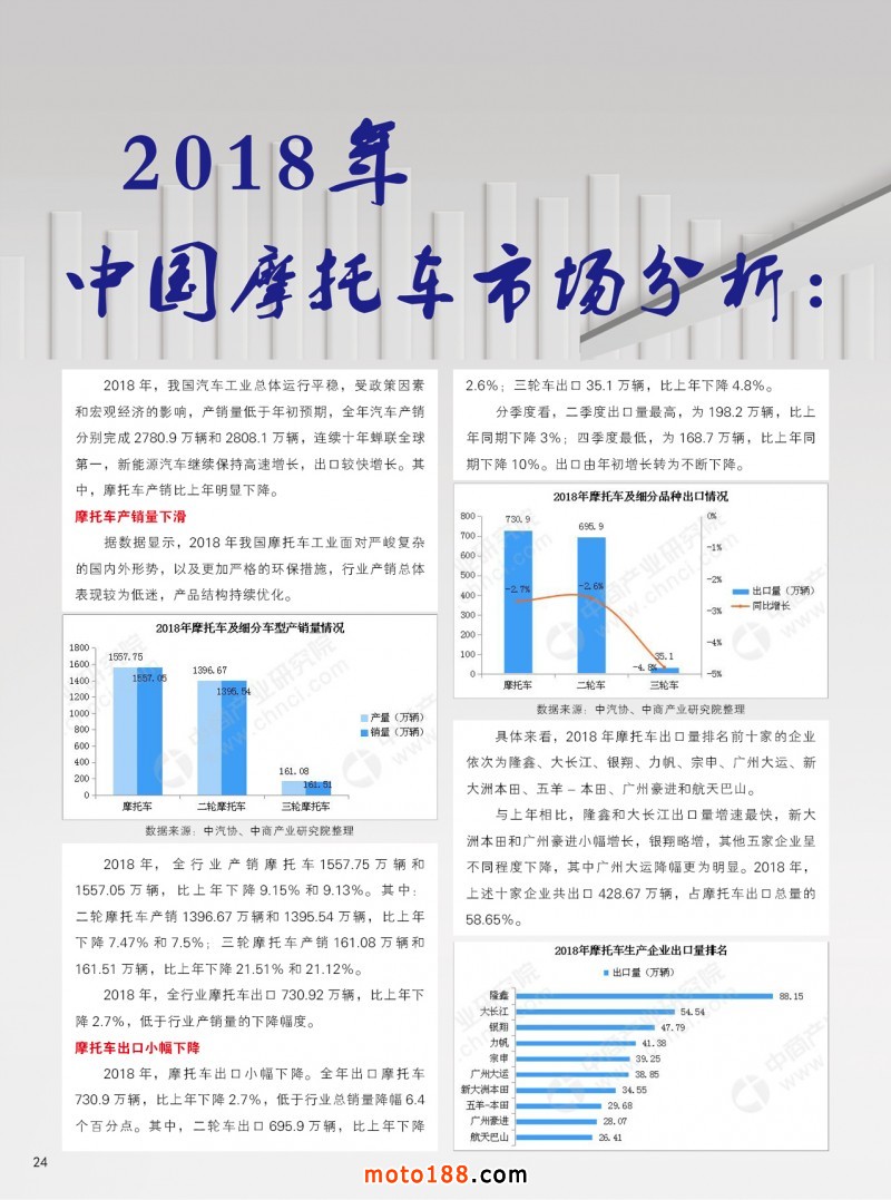 內24 2018年中國摩托車市場分析:銷量1557.05萬輛,同比下滑9.13%