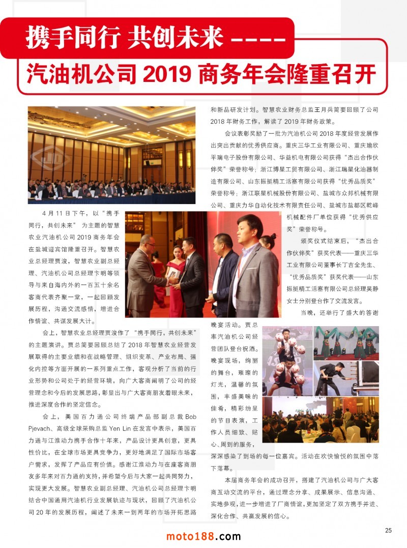 2019.5月《摩托車/電動車與配件》雜志,歡迎大家閱讀日期:2019-05-08 點擊:1861 查看原圖 全部展開![]() ![]() ![]() 內(nèi)25 攜手同行 共創(chuàng)未來----汽油機公司2019商務年會隆重召開