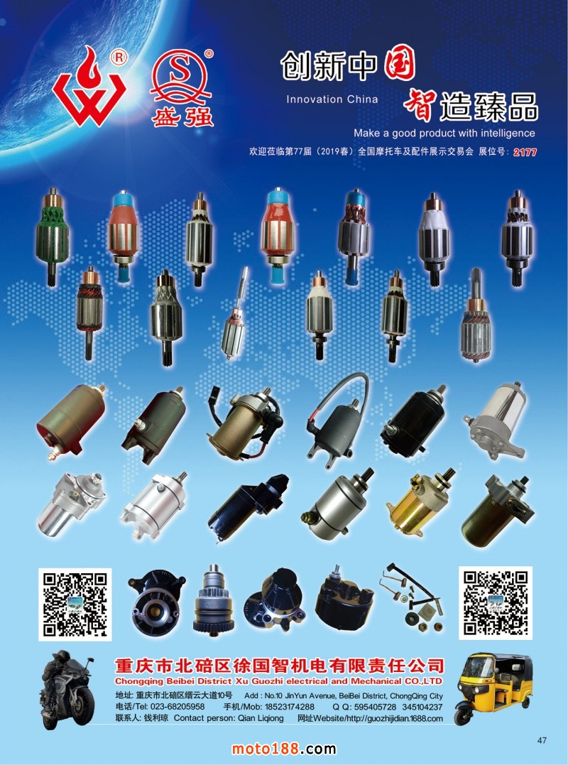 2019.5月《摩托車/電動車與配件》雜志,歡迎大家閱讀日期:2019-05-08 點擊:1861 查看原圖 全部展開![]() ![]() ![]() 內(nèi)47 重慶市北碚區(qū)徐國智機(jī)電有限責(zé)任公司