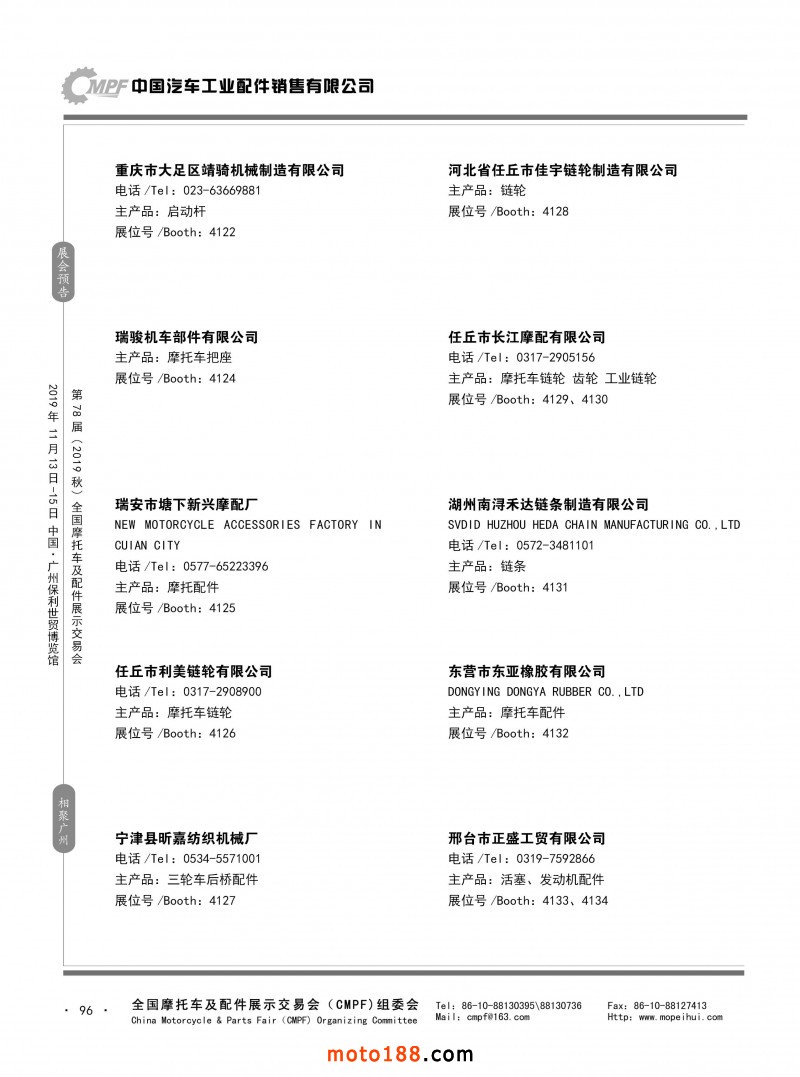 內(nèi)96 第77屆(2019春)全國摩托車及配件展示交易會-青島站參展企業(yè)信息