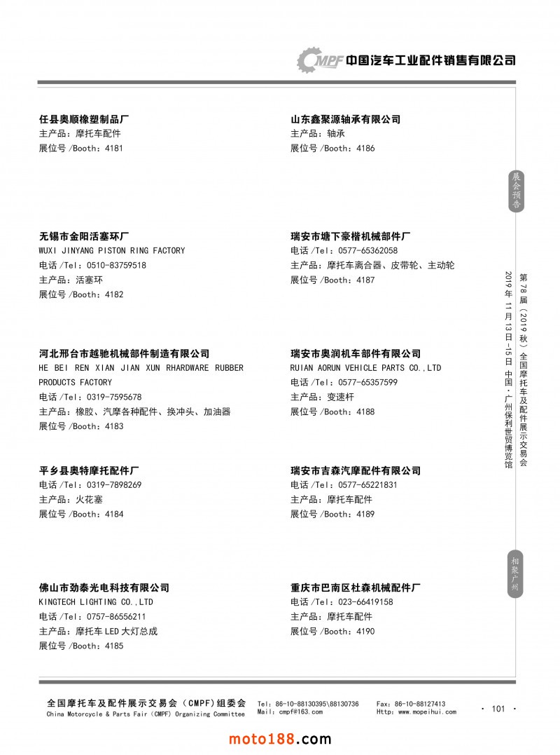 內(nèi)101 第77屆(2019春)全國摩托車及配件展示交易會-青島站參展企業(yè)信息
