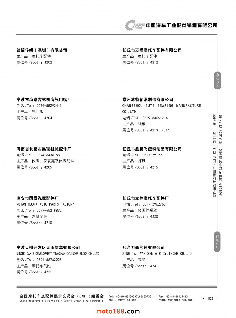 內(nèi)103 第77屆(2019春)全國(guó)摩托車及配件展示交易會(huì)-青島站參展企業(yè)信息