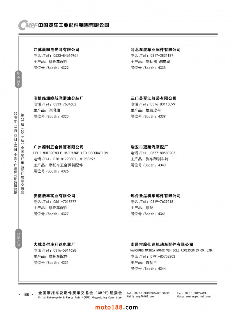 內(nèi)108 第77屆(2019春)全國(guó)摩托車及配件展示交易會(huì)-青島站參展企業(yè)信息