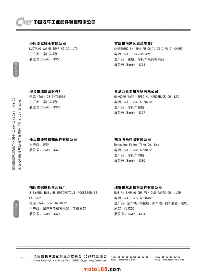 內110 第77屆(2019春)全國摩托車及配件展示交易會-青島站參展企業(yè)信息