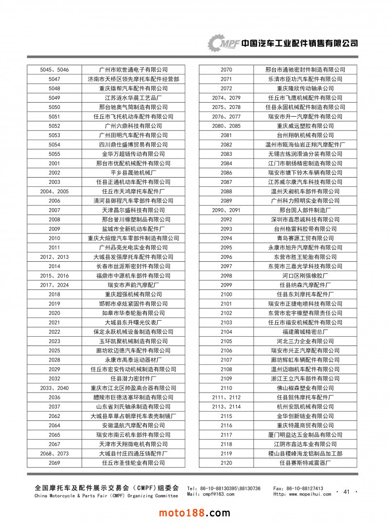 內(nèi)41 第77屆(2019春)全國摩托車及配件展示交易會-青島站參展單位名錄