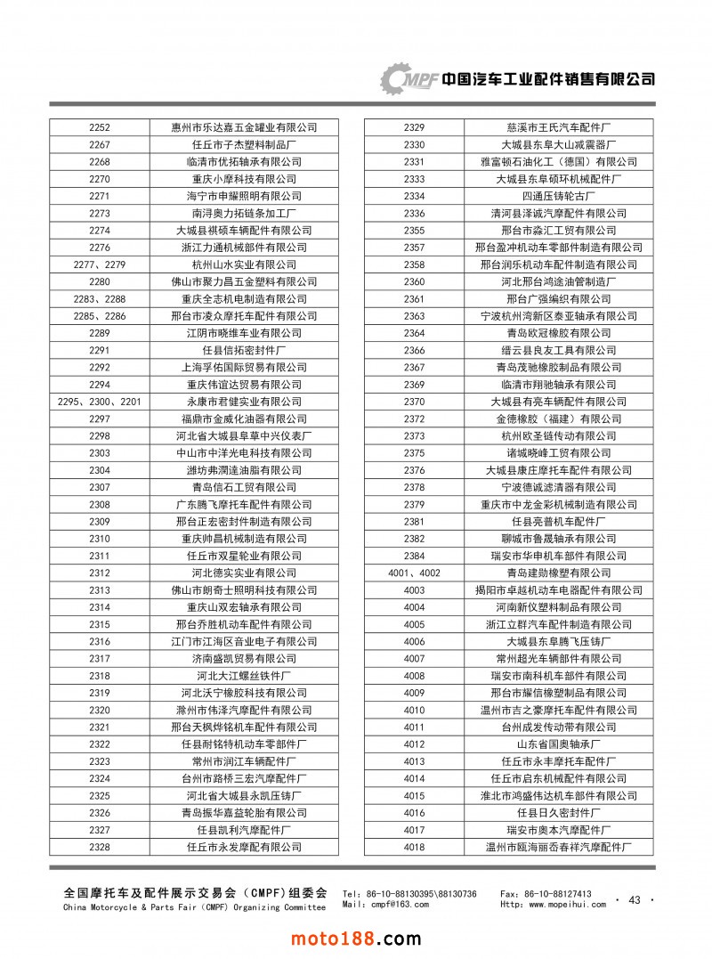 內(nèi)43 第77屆(2019春)全國(guó)摩托車及配件展示交易會(huì)-青島站參展單位名錄