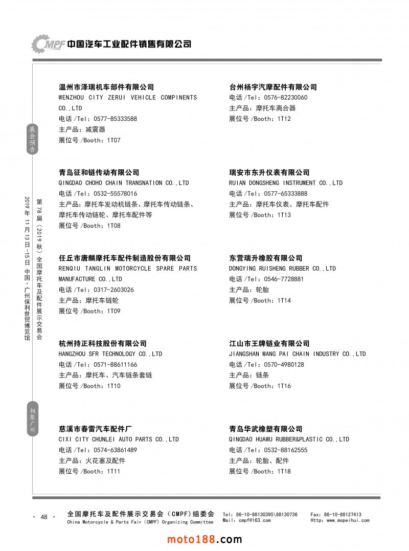 內48 第77屆(2019春)全國摩托車及配件展示交易會-青島站參展企業(yè)信息