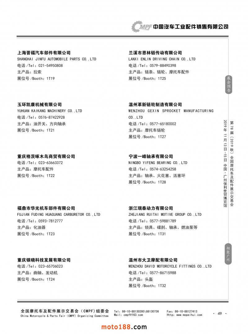 內(nèi)49 第77屆(2019春)全國摩托車及配件展示交易會-青島站參展企業(yè)信息