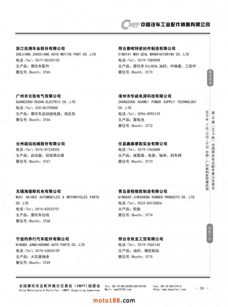 內(nèi)55 第77屆(2019春)全國(guó)摩托車及配件展示交易會(huì)-青島站參展企業(yè)信息