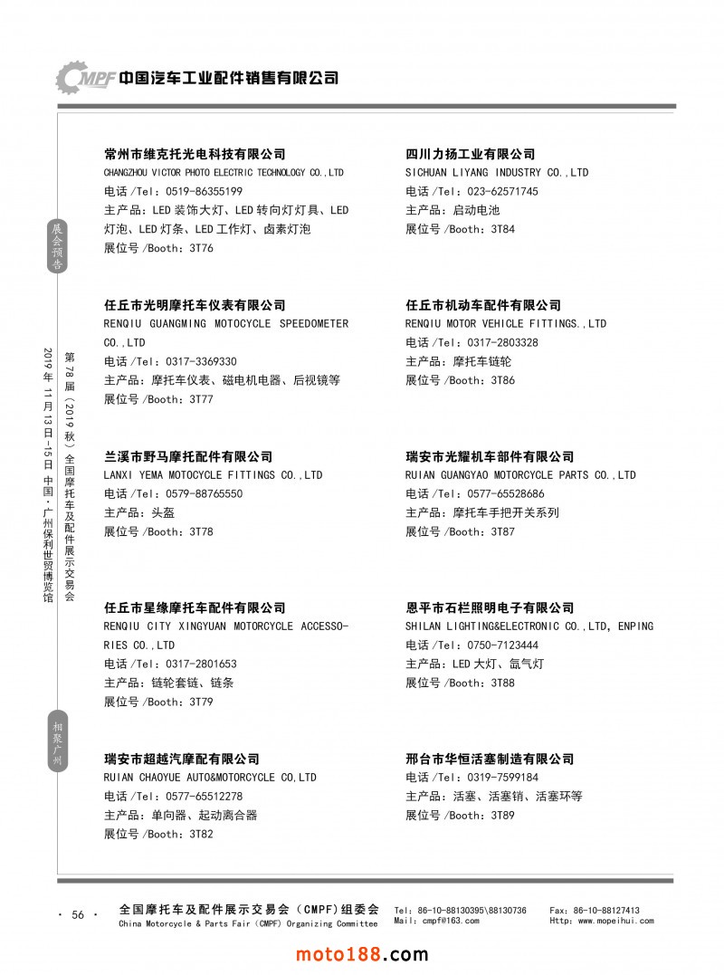 內(nèi)56 第77屆(2019春)全國摩托車及配件展示交易會-青島站參展企業(yè)信息