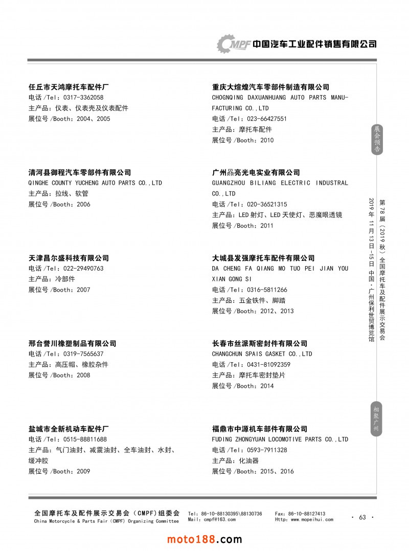 內(nèi)63 第77屆(2019春)全國摩托車及配件展示交易會-青島站參展企業(yè)信息
