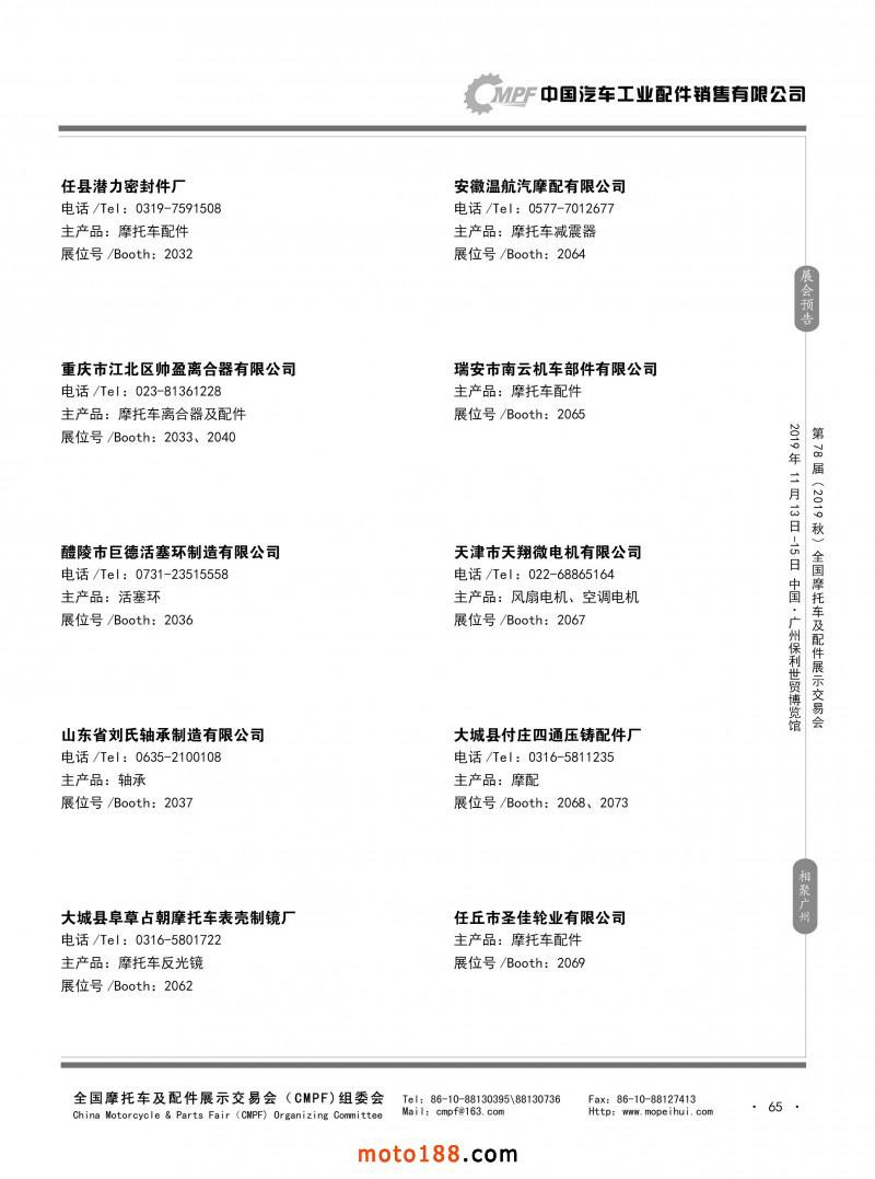 內(nèi)65 第77屆(2019春)全國(guó)摩托車(chē)及配件展示交易會(huì)-青島站參展企業(yè)信息