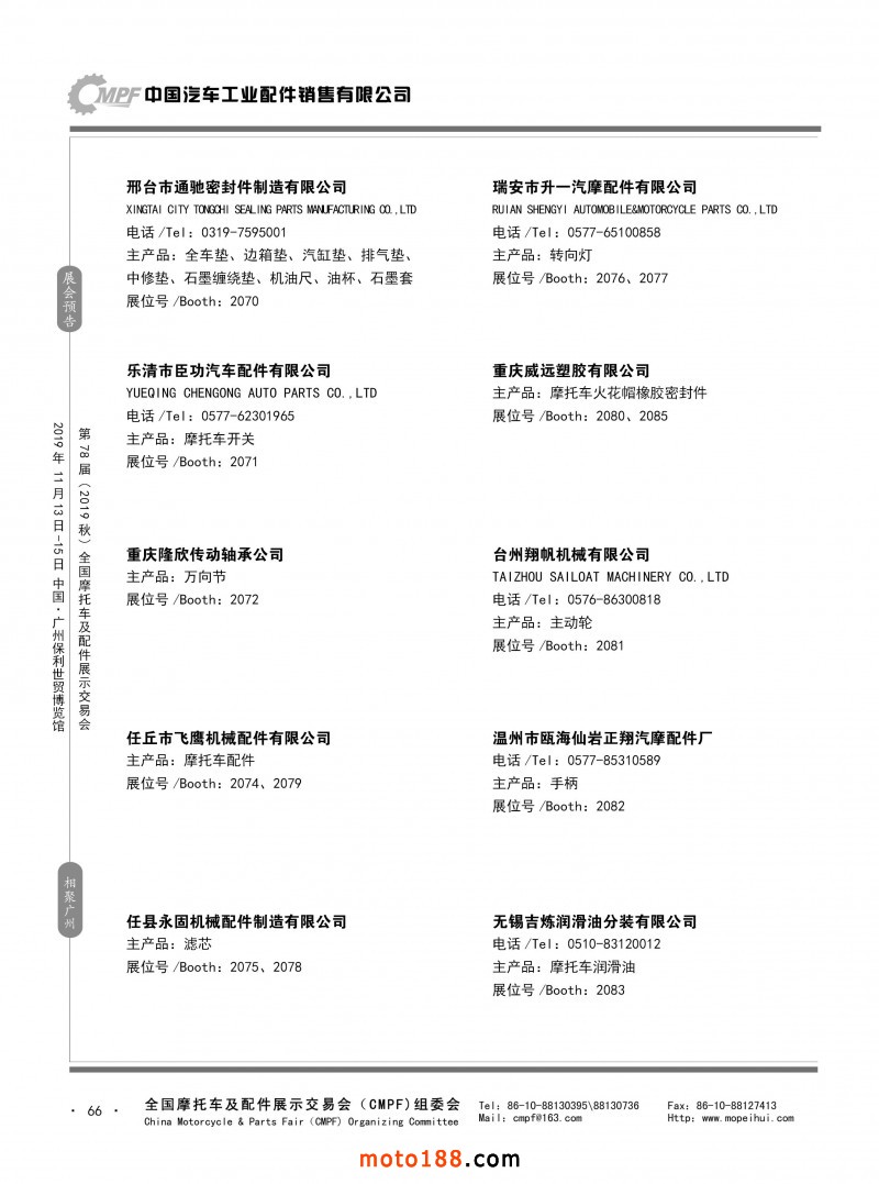內66 第77屆(2019春)全國摩托車及配件展示交易會-青島站參展企業(yè)信息