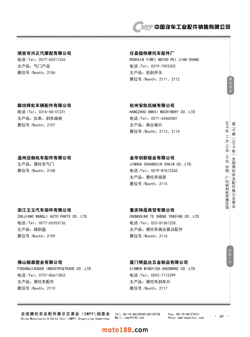 內69 第77屆(2019春)全國摩托車及配件展示交易會-青島站參展企業(yè)信息