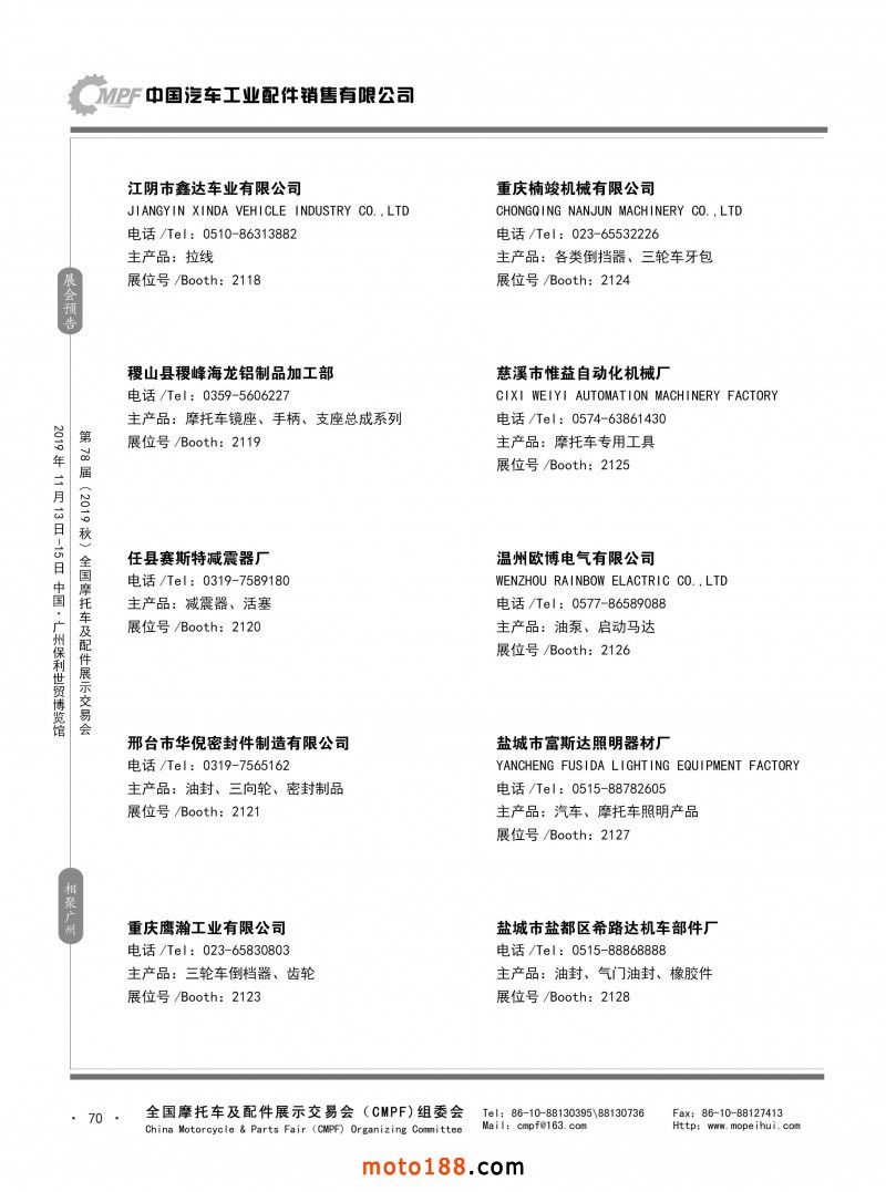 內(nèi)70 第77屆(2019春)全國摩托車及配件展示交易會-青島站參展企業(yè)信息