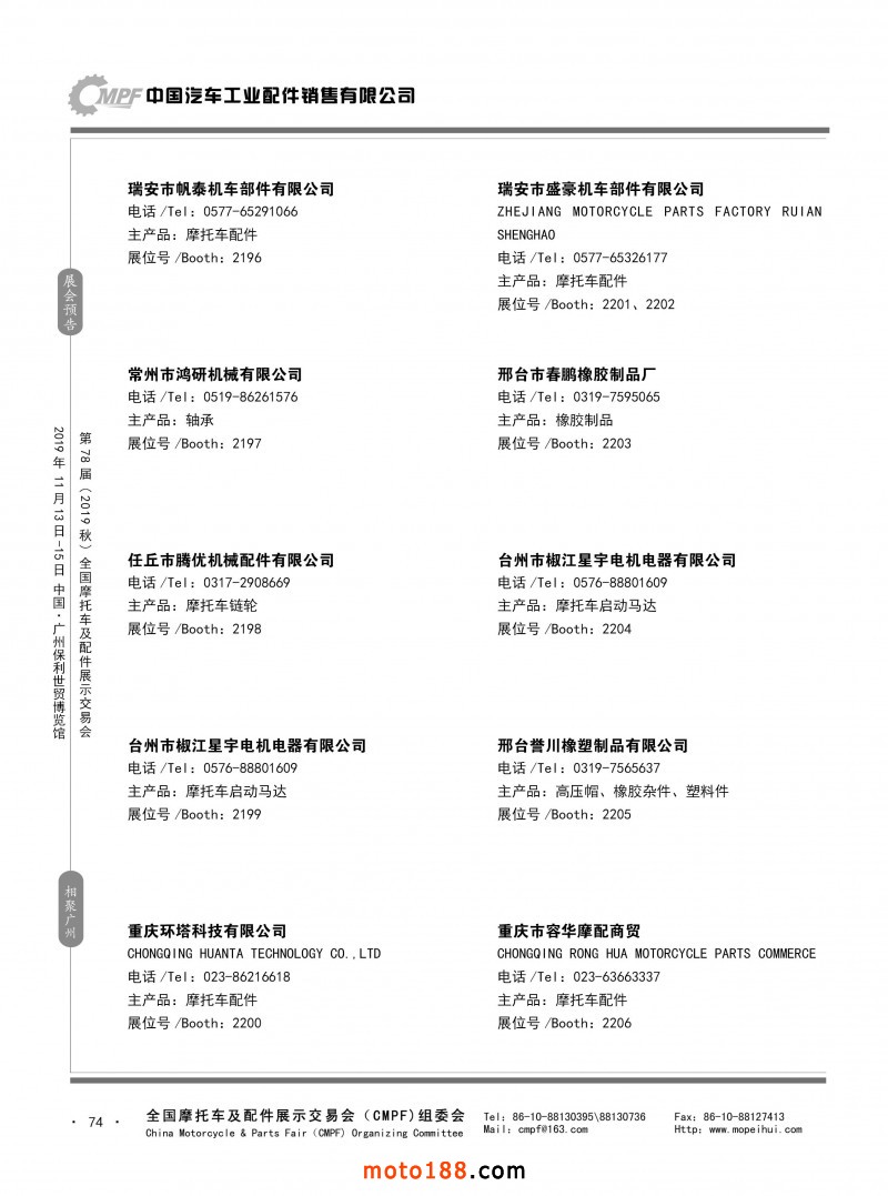 內(nèi)74 第77屆(2019春)全國摩托車及配件展示交易會-青島站參展企業(yè)信息
