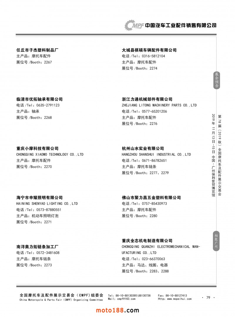 內(nèi)79 第77屆(2019春)全國摩托車及配件展示交易會-青島站參展企業(yè)信息