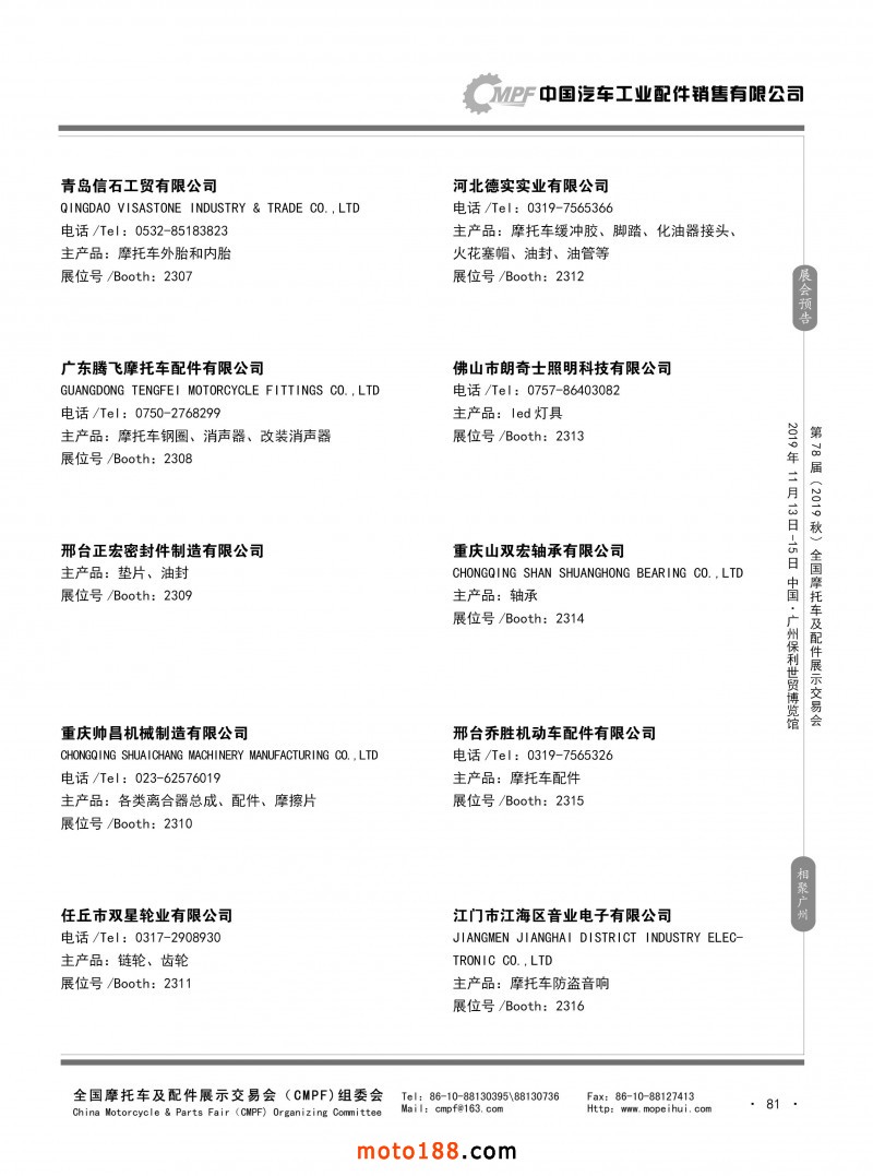 內(nèi)81 第77屆(2019春)全國摩托車及配件展示交易會-青島站參展企業(yè)信息