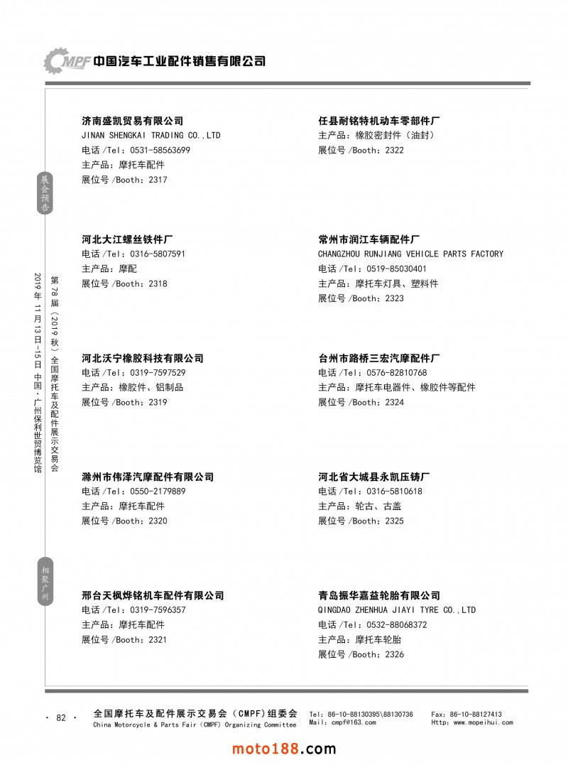 內(nèi)82 第77屆(2019春)全國摩托車及配件展示交易會-青島站參展企業(yè)信息
