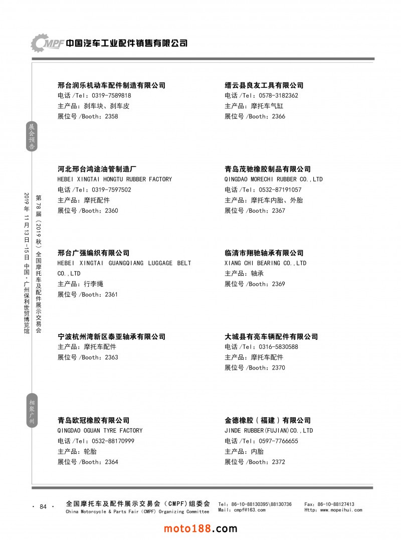 內(nèi)84 第77屆(2019春)全國摩托車及配件展示交易會(huì)-青島站參展企業(yè)信息