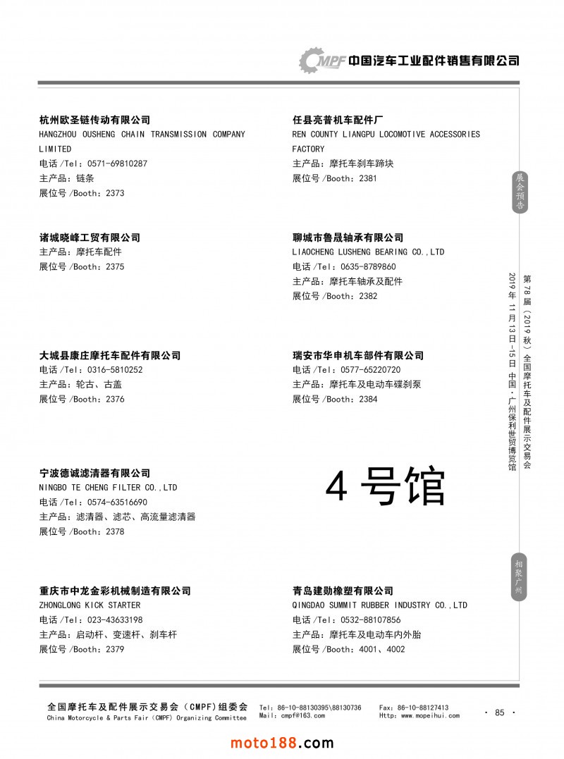 內(nèi)85 第77屆(2019春)全國(guó)摩托車及配件展示交易會(huì)-青島站參展企業(yè)信息