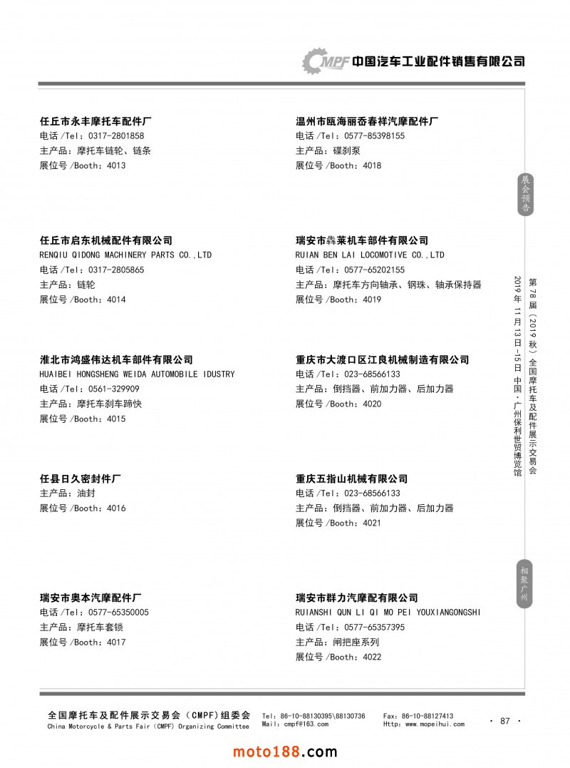 內(nèi)87 第77屆(2019春)全國(guó)摩托車及配件展示交易會(huì)-青島站參展企業(yè)信息