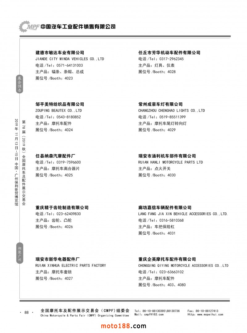 內(nèi)88 第77屆(2019春)全國摩托車及配件展示交易會-青島站參展企業(yè)信息