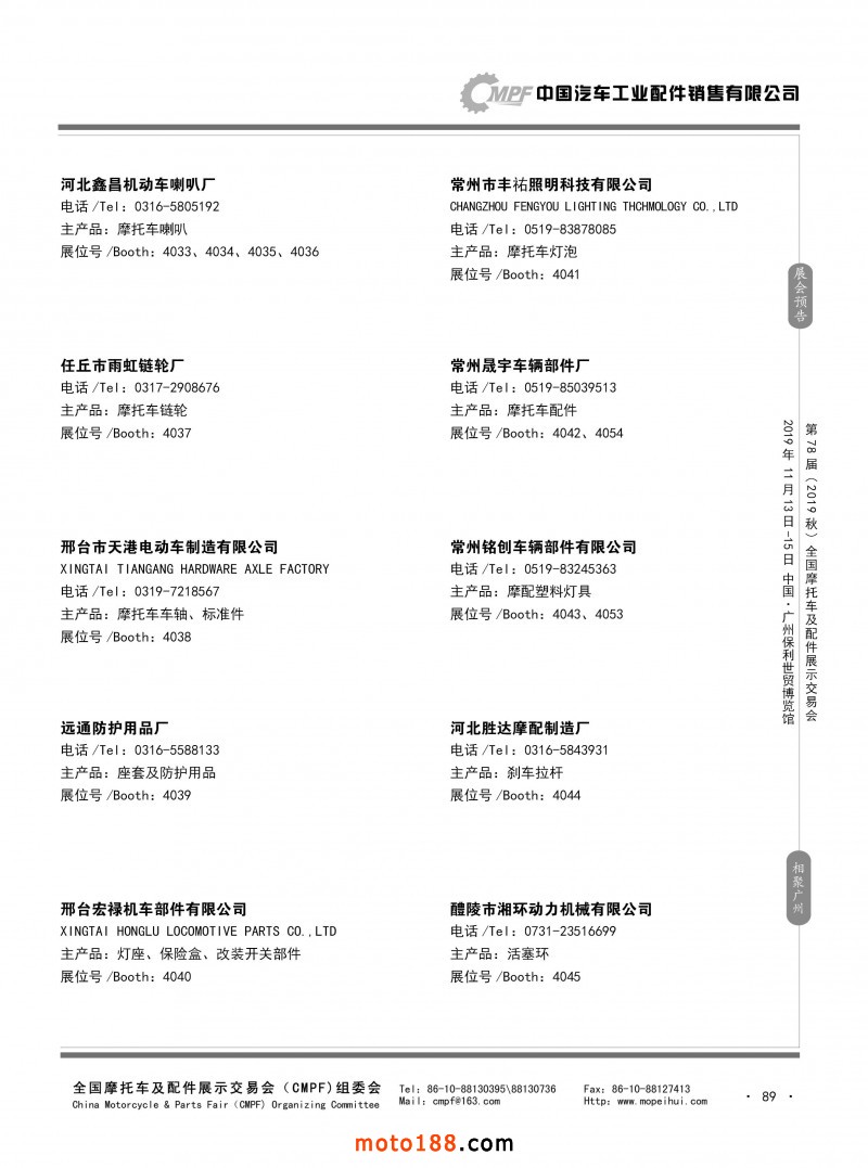 內(nèi)89 第77屆(2019春)全國(guó)摩托車及配件展示交易會(huì)-青島站參展企業(yè)信息