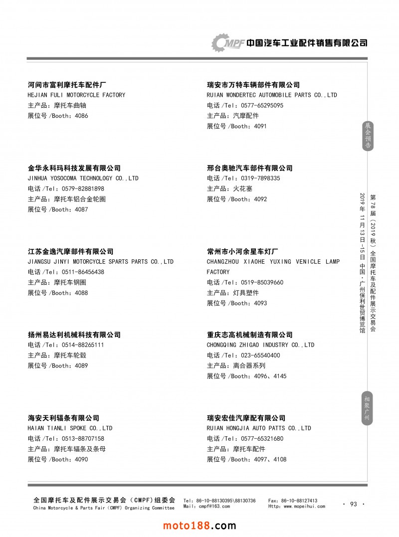 內(nèi)93 第77屆(2019春)全國摩托車及配件展示交易會-青島站參展企業(yè)信息