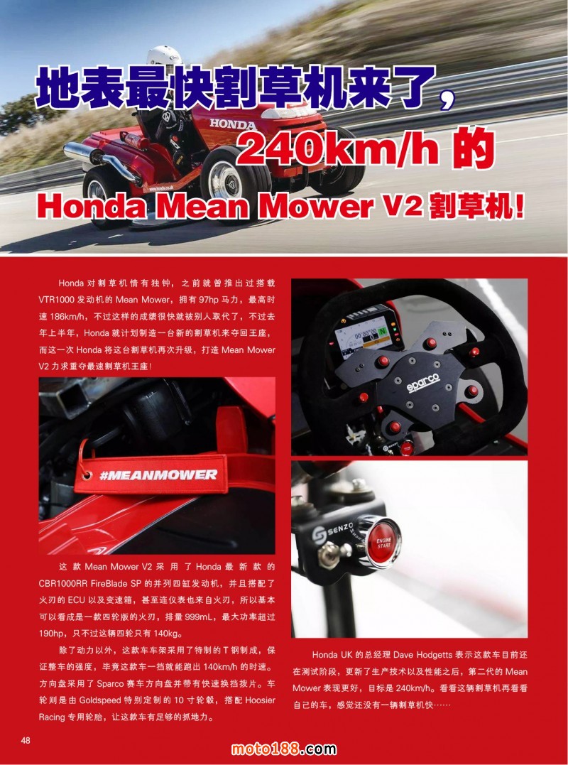 內(nèi)48 地表最快割草機(jī)來了,240km/h的Honda Mean Mower v2割草機(jī)!