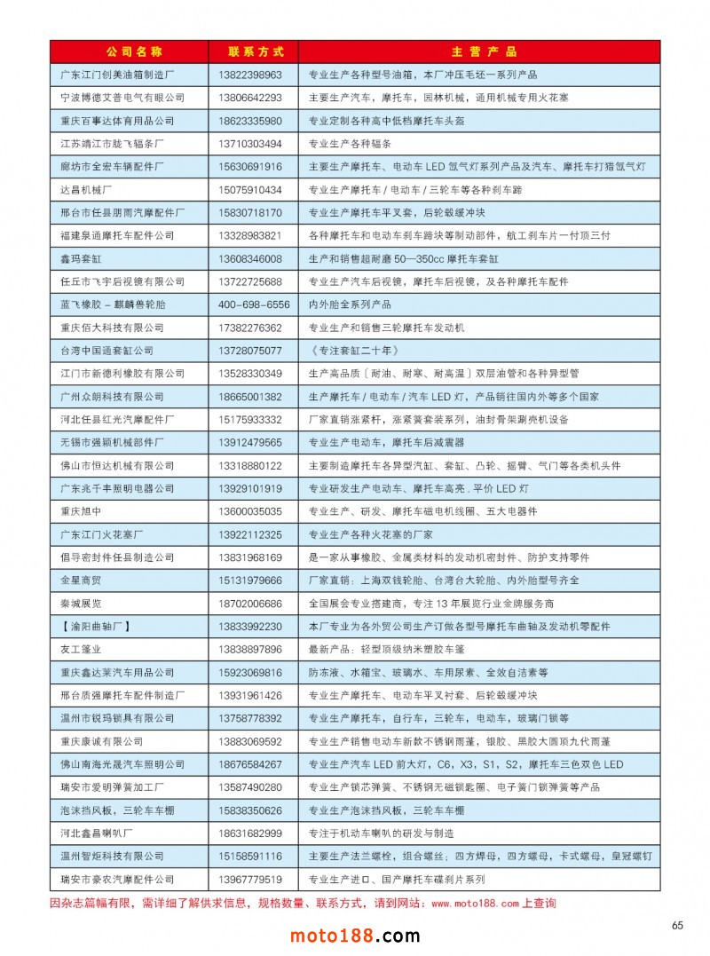 我們期待十一月份的行業(yè)的大聚會,我們的展位在3345號,就是樓上和樓下中間的結合部,目前我們已經在為會議做準備工作,會期的《電摩與配件》雜志和《會刊》的廣告宣傳征集已經開始。
