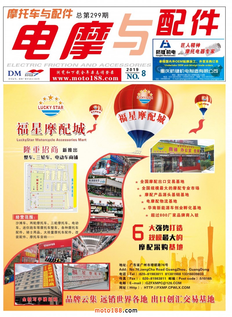2019中國摩博會(huì)將于9月20-23日在重慶國際博覽中心舉行,本期雜志除正常發(fā)行之外,還將參加重慶展會(huì)發(fā)行。同時(shí)我們將做好《第11期雜志》,以及廣州摩配會(huì)的《會(huì)刊》,善始善終,2019將以完美的結(jié)局進(jìn)行收尾,不負(fù)行業(yè)不負(fù)你。