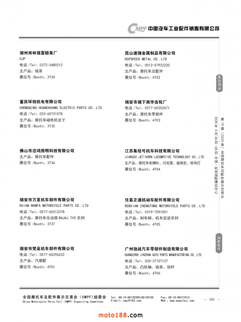 內(nèi)79-172 第78屆(2019秋)全國(guó)摩托車及配件展示交易會(huì)-廣州站參展企業(yè)信息