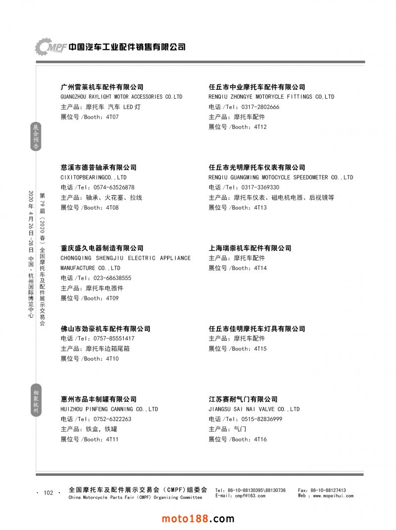 內(nèi)79-172 第78屆(2019秋)全國摩托車及配件展示交易會-廣州站參展企業(yè)信息