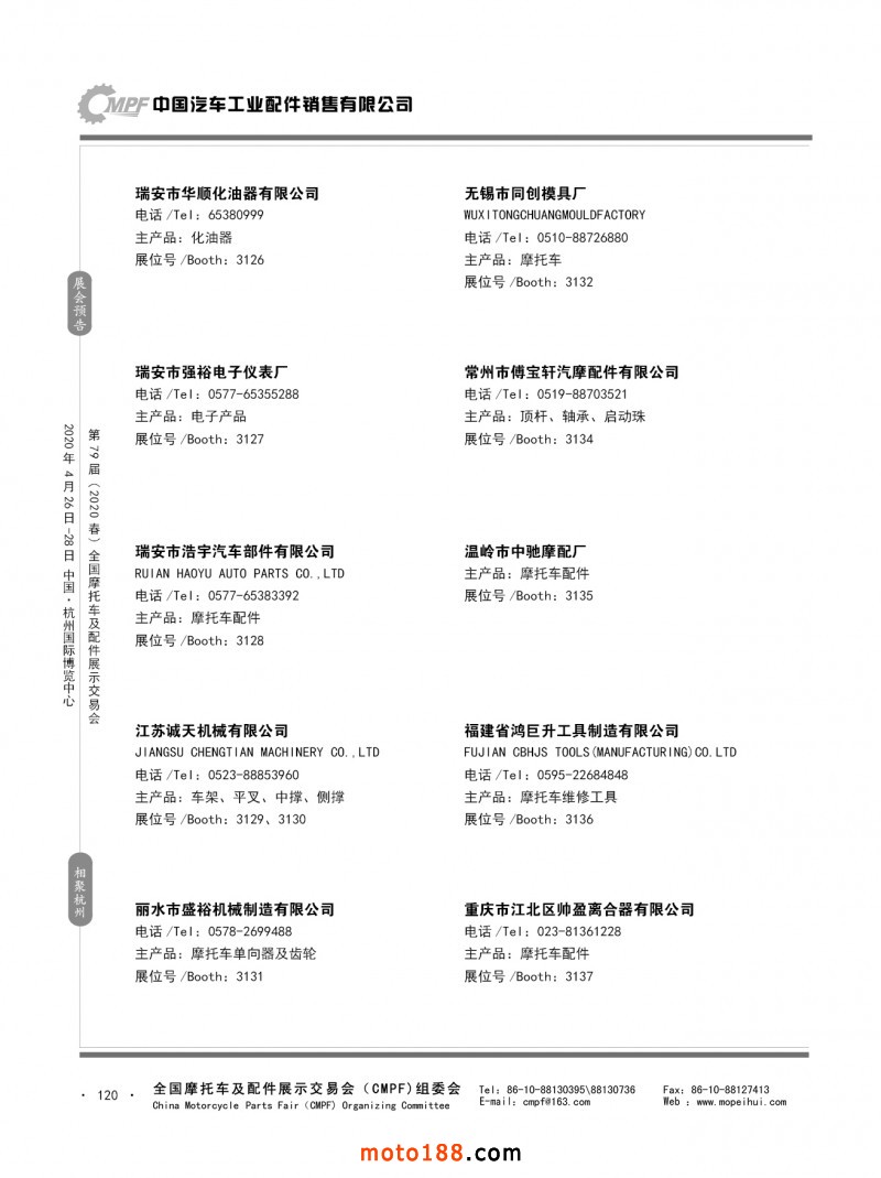 內(nèi)79-172 第78屆(2019秋)全國摩托車及配件展示交易會(huì)-廣州站參展企業(yè)信息