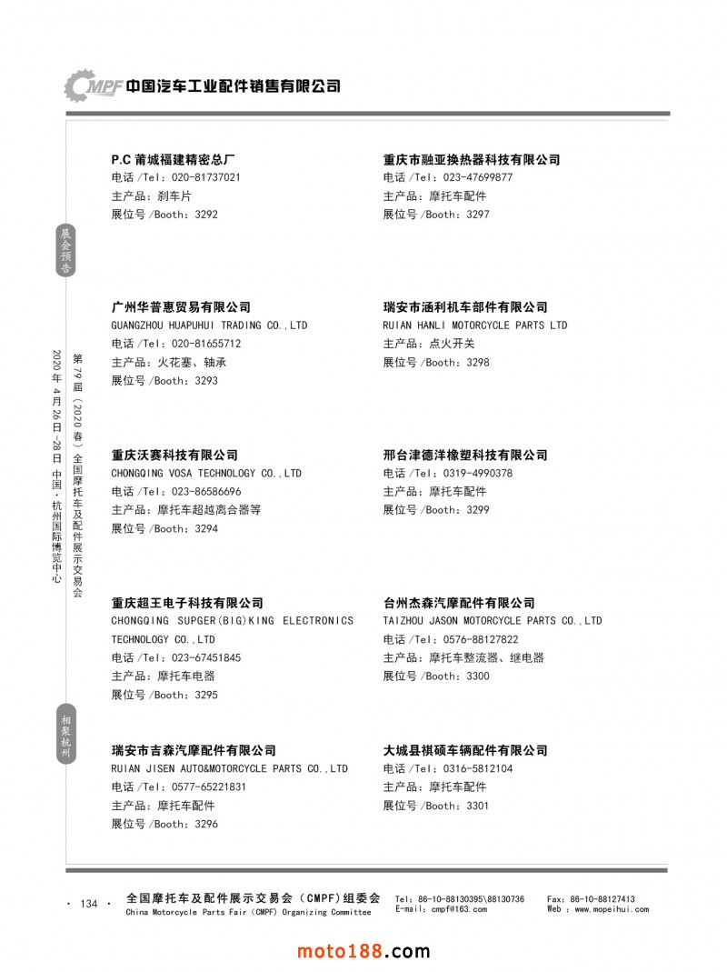 內(nèi)79-172 第78屆(2019秋)全國(guó)摩托車及配件展示交易會(huì)-廣州站參展企業(yè)信息
