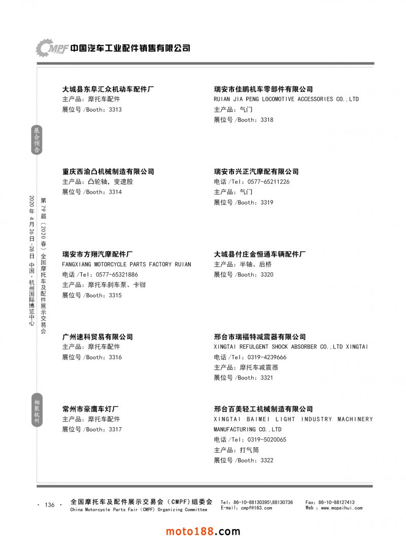 內(nèi)79-172 第78屆(2019秋)全國(guó)摩托車及配件展示交易會(huì)-廣州站參展企業(yè)信息