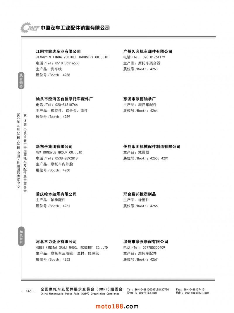 內(nèi)79-172 第78屆(2019秋)全國摩托車及配件展示交易會-廣州站參展企業(yè)信息