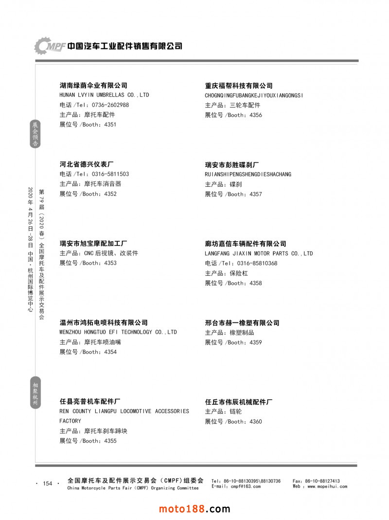 內(nèi)79-172 第78屆(2019秋)全國摩托車及配件展示交易會-廣州站參展企業(yè)信息