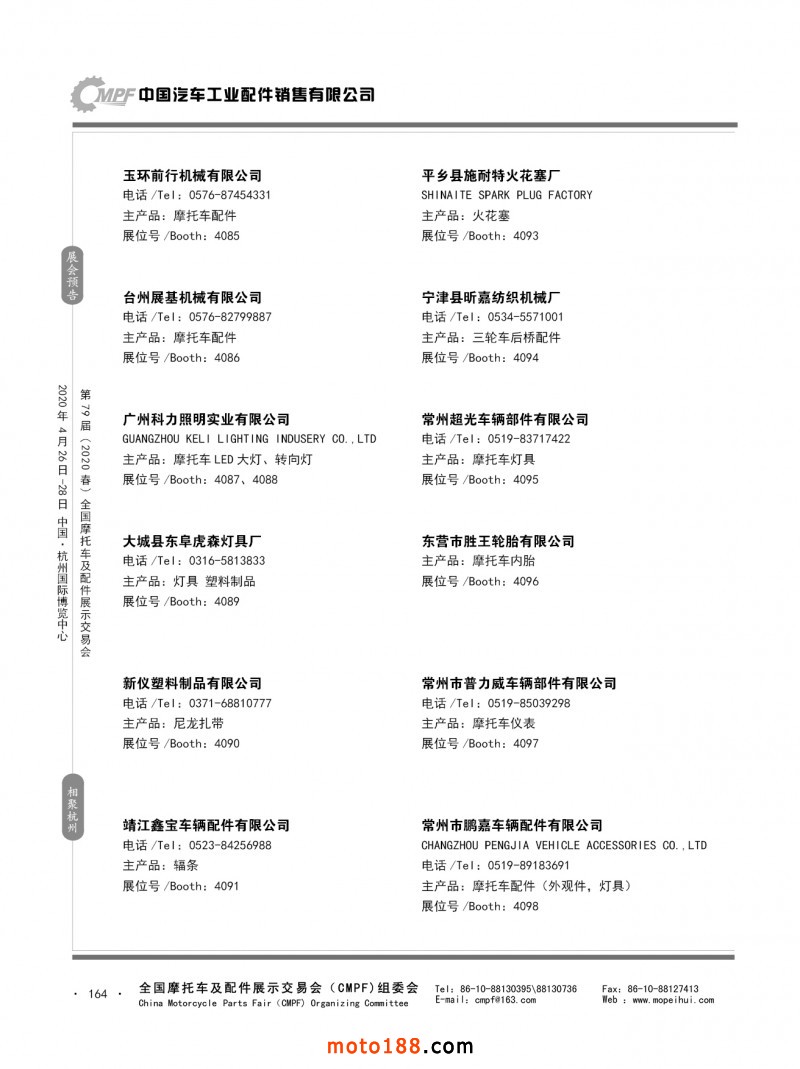 內(nèi)79-172 第78屆(2019秋)全國摩托車及配件展示交易會-廣州站參展企業(yè)信息
