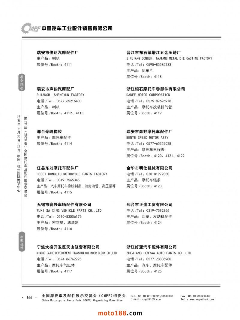 內(nèi)79-172 第78屆(2019秋)全國(guó)摩托車(chē)及配件展示交易會(huì)-廣州站參展企業(yè)信息