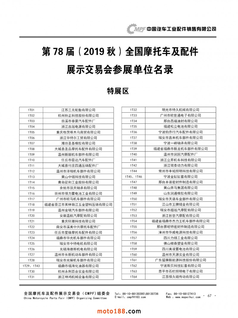 內(nèi)67-78 第78屆(2019秋)全國(guó)摩托車及配件展示交易會(huì)-廣州站參展單位名錄