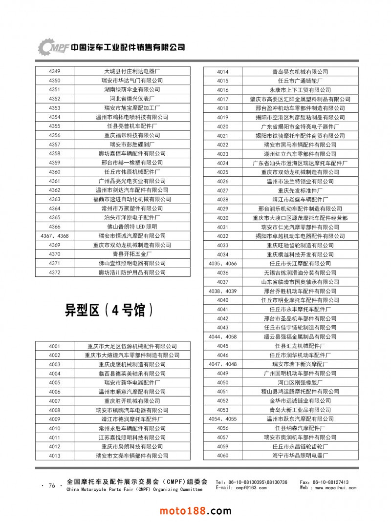 內(nèi)67-78 第78屆(2019秋)全國(guó)摩托車及配件展示交易會(huì)-廣州站參展單位名錄