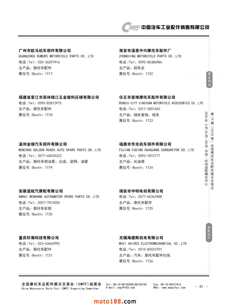 內(nèi)79-172 第78屆(2019秋)全國(guó)摩托車及配件展示交易會(huì)-廣州站參展企業(yè)信息