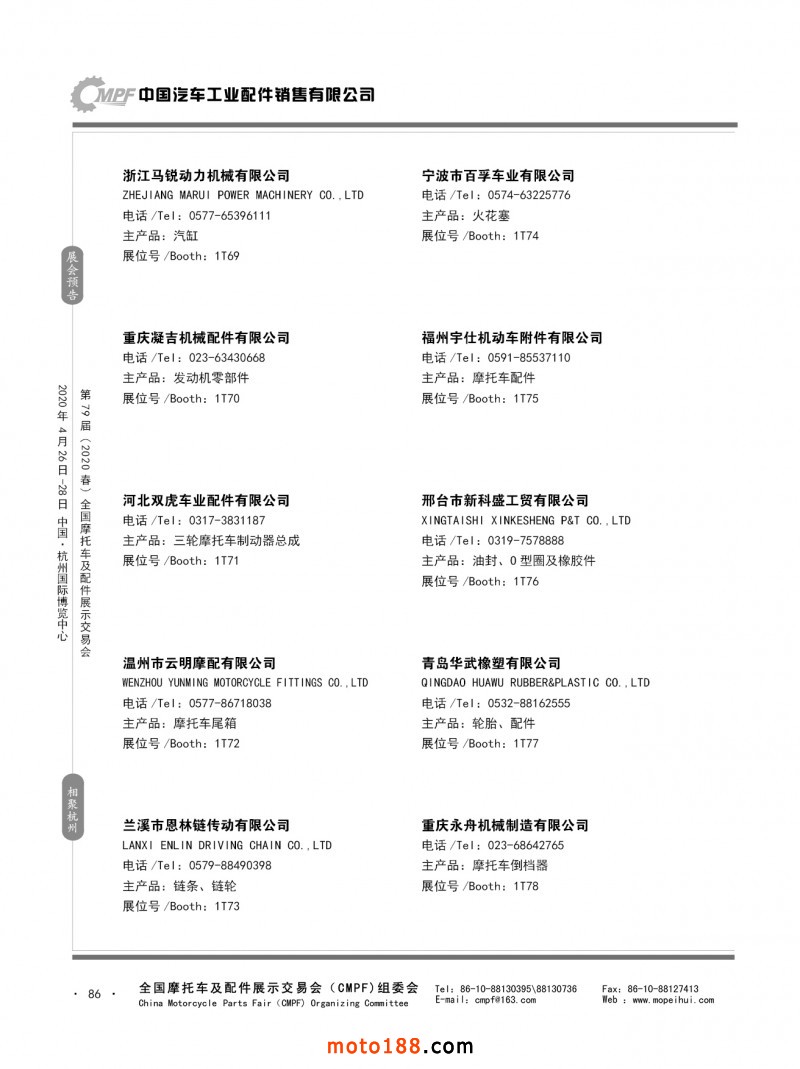 內(nèi)79-172 第78屆(2019秋)全國摩托車及配件展示交易會-廣州站參展企業(yè)信息