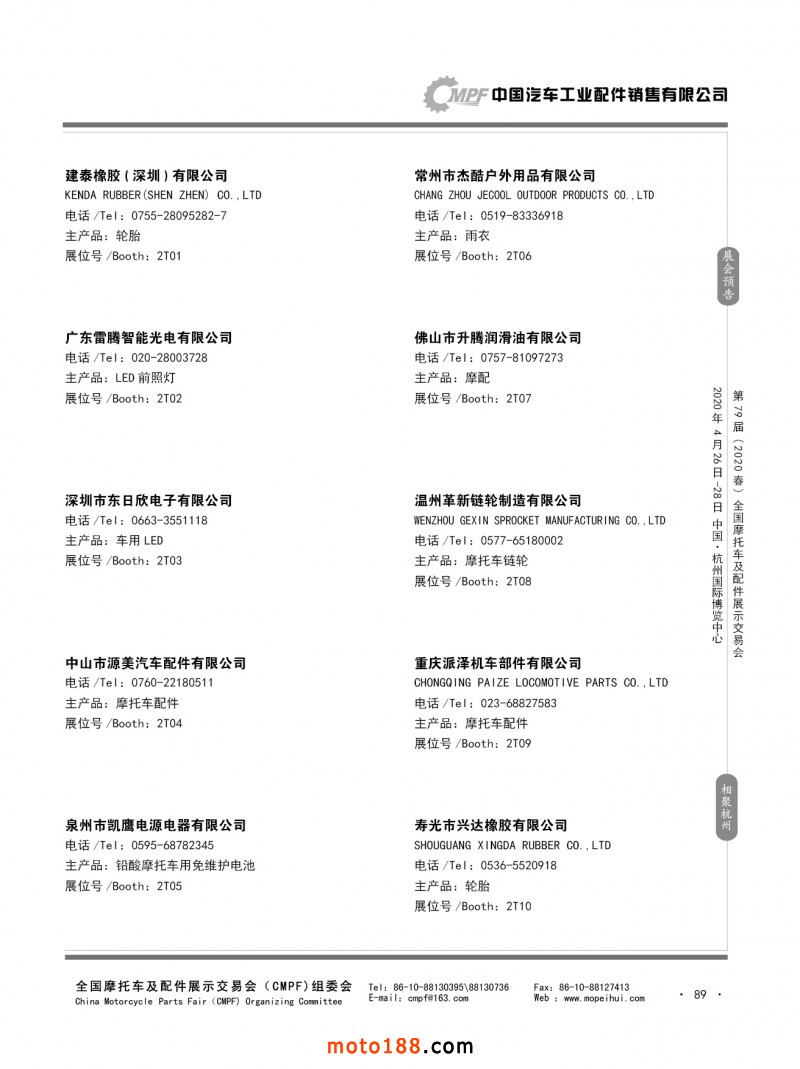 內(nèi)79-172 第78屆(2019秋)全國摩托車及配件展示交易會-廣州站參展企業(yè)信息