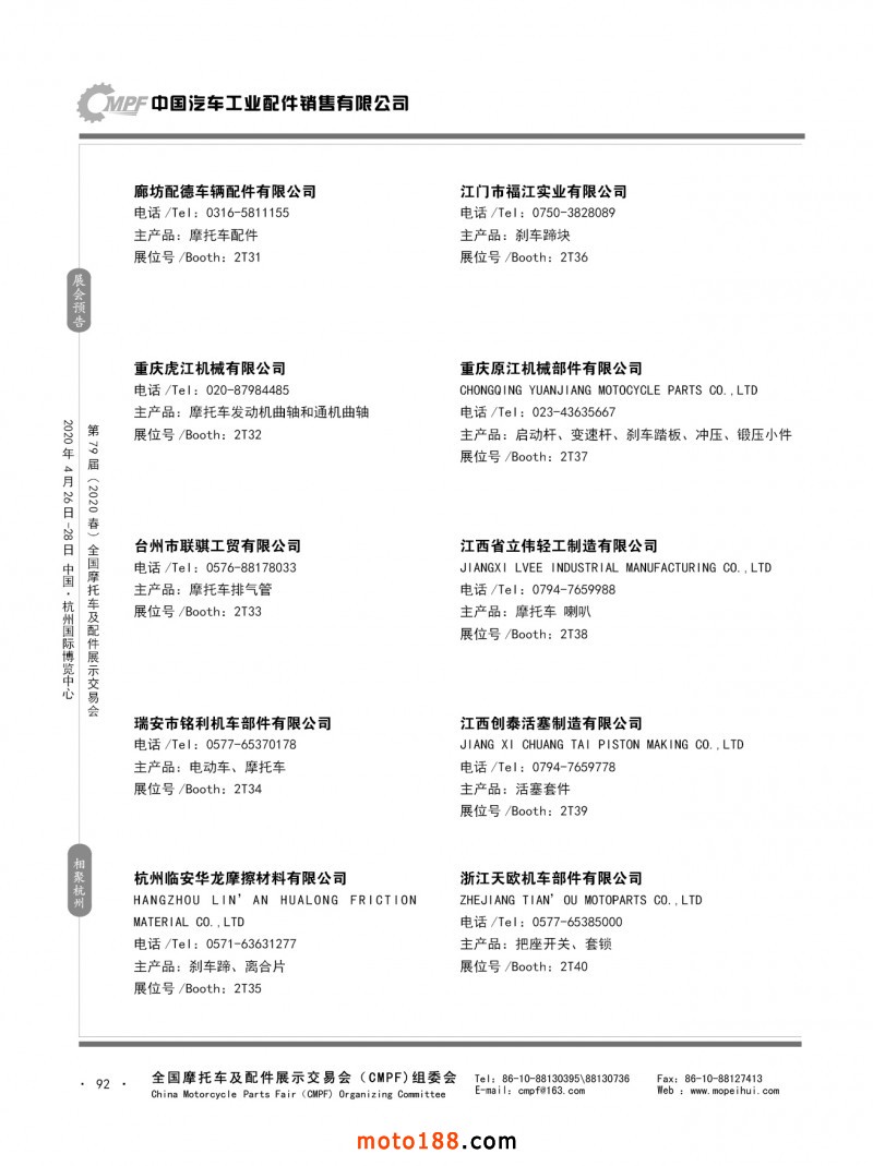 內(nèi)79-172 第78屆(2019秋)全國(guó)摩托車(chē)及配件展示交易會(huì)-廣州站參展企業(yè)信息