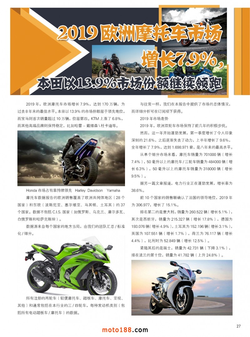 內(nèi)27 2019歐洲摩托車(chē)市場(chǎng)增長(zhǎng)7.9%,本田以13.9%市場(chǎng)份額繼續(xù)領(lǐng)跑