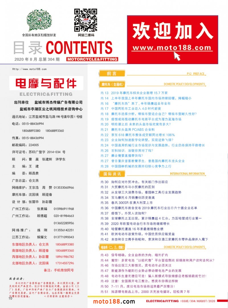 隨著中國疫情的有效控制,我們電摩產(chǎn)品作為大眾的交通工具,在疫情期間有獨特出行的便捷,所以在疫情之后出現(xiàn)了一波購買熱,電動車行業(yè)會議也陸續(xù)開展了,盡管規(guī)模受一定影響,但是人氣依然旺盛,比如6月份的無錫太湖電動車展效果就比較好,各地來賓比較多。在這期雜志,我們精選了這半年來行業(yè)發(fā)展的題材內(nèi)容,對行業(yè)做了較全面的客觀報道,供行業(yè)人士參考。